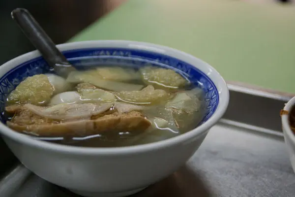 綜合湯:25元。湯味亦如碗粿之米漿一般,十分清淡。近來健康意識抬頭,許許多多小吃捨棄了味素調味,僅用單純食材燉煮。這樣清淡的味道,倒也不是什麼壞事。僅有與過往味道不太一樣之感觸,倒是有些鮮美回憶,便僅存於心裡了。推薦度:可以嚐嚐。