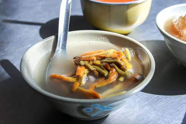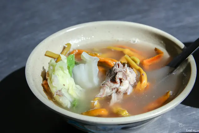 金針肉湯的湯頭清甜、喝起來是有豬骨和蔬菜的甘味,整體不會油膩、口感十分清爽。金針花爽脆而且量蠻多,底下則是排骨和高麗菜,也難怪湯頭喝起來很甘甜啊。