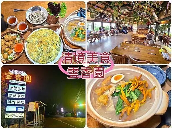 梅子用餐心得:我們住在清境時,水擺夷民宿就距離雲香園非常近,走路就可以抵達,餐點無論是過橋米線、當歸葉烘蛋或者雲香酥肉……等,每樣餐點讓我們倆非常喜歡,也都留下深刻難忘印象,期待下回再來清境吃喝遊玩時,再來雲香園用餐,玻璃屋景觀餐廳還可以邊吃飯邊欣賞美麗景色,還有一個景觀臺,喜歡拍照的大家,不妨來趟雲香園,不僅餐點美味可口,還能欣賞山景或夕陽,真的超棒!重點:停車非常便利!