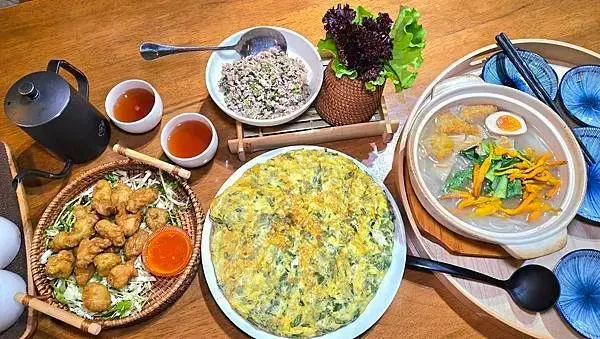 新鮮當歸葉細切,香氣十足,吃起來有淡淡的當歸香氣,伴隨著煎蛋的軟嫩和清爽,這道餐點也非常推薦