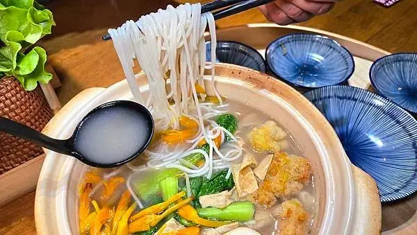 來到雲香園,一定要來這熱呼呼過橋米線,光食材近6款,店員還會貼心告訴我們要將食材一一放入米線裡,最後,再放入一顆半生熟溫泉蛋,溫馨小叮嚀:過橋米線趁熱吃唷…