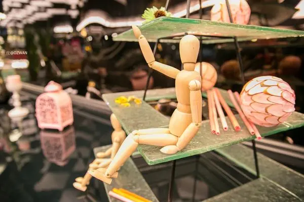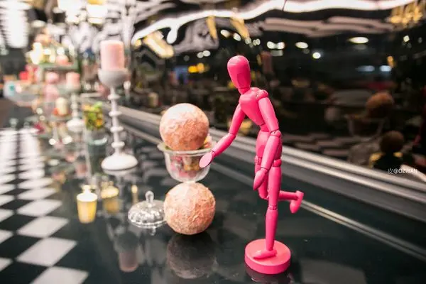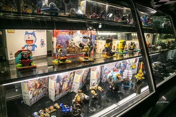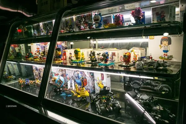原本應該是放甜點、蛋糕的冰櫃,走近一瞧會發現它是積木模型,