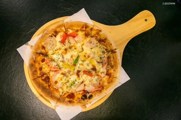 使用日本的鳥越製粉製作麵糰,以手拍方式做餅皮、自行調製醬料,8吋薄片披薩
