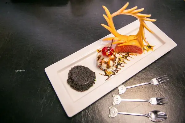 我想到旭日東昇的畫面,如此朝氣蓬勃的葡萄柚,吃甜點還送你雕花水果,美美DER。