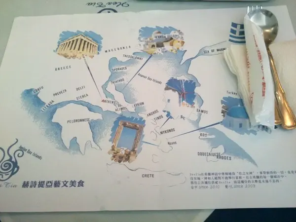 桌餐紙豐富的知識,告訴你希臘有名的景點在哪和赫詩提亞的由來…等餐時可瞧瞧!