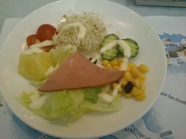 一開始上場的是沙拉…但…除了罐頭鳳梨、葡萄乾口感可以之外…其它真的沒味道!!!