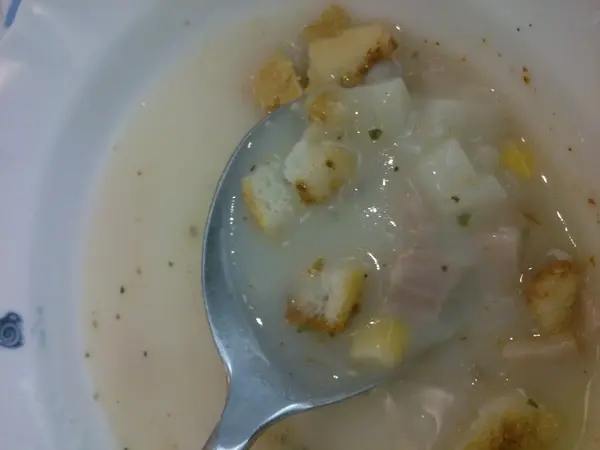有照片為証,真的料很多,有火腿、馬鈴薯、洋蔥、玉米、麵包塊…真的很讚