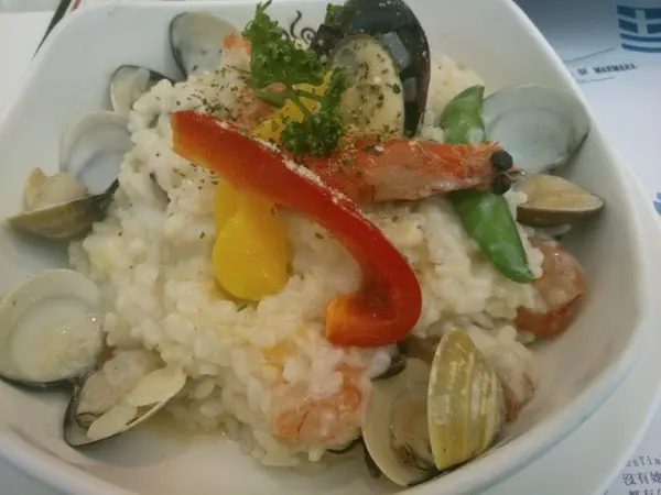 今天我就點了個:海力克斯之食…有推廌的"義式海鮮起司燉飯"…