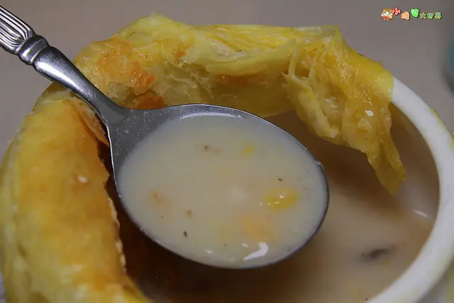 ▼我喜歡把酥皮泡進去湯裏頭,這樣搭配著吃竟然更襯托出濃湯的奶香。