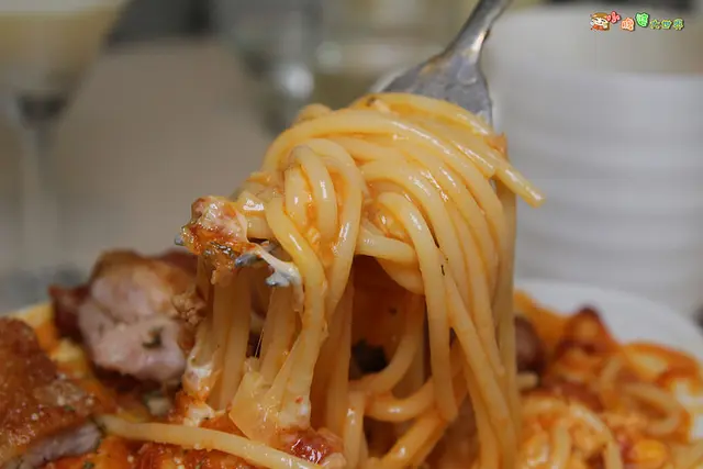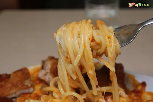 ▼更可惡的是連麵體都可以看的到起司的絲,我選擇直麵+紅醬。