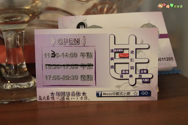 營業時間:周一至周六 11:30~14:00,17:00~20:30(星期日如要包場可先打電話預訂)