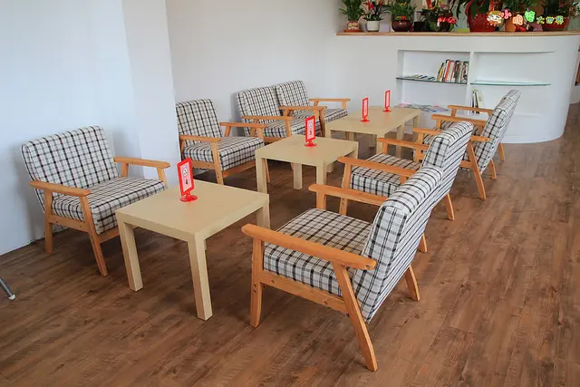 木製地板和座椅,讓人不自覺的放輕步調,輕聲細語的聊天。