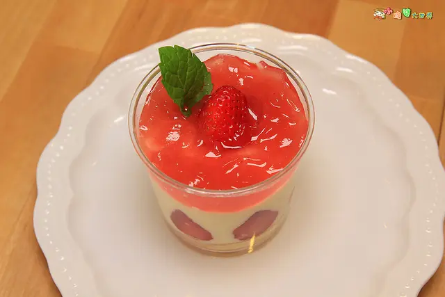 最上面的草莓果凍很滑溜,搭配中間白色有點液狀的奶酪,