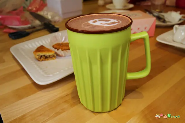 可可拿鐵=巧克力+牛奶,所以小朋友也可以喝唷,上面還有可愛的圖案。