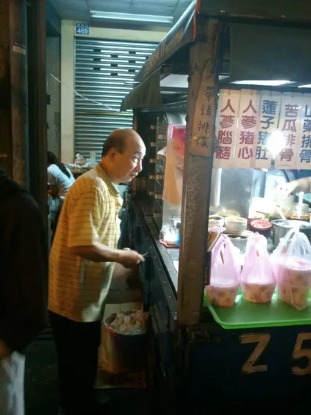 穿黃色橫條紋的這位就是老闆了,很可愛可親吧~記得認明這個人唷~他們的燉湯很有名很好吃,品類還滿多的,就只有一個煎蘿蔔糕配著吃而己,但這個也是必點的喔。