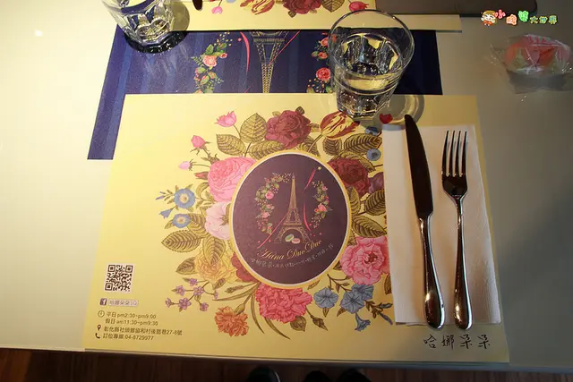 ((僅有叉子和刀子應該是下午茶擺設的,晚餐套餐應該還有多湯匙及叉子))