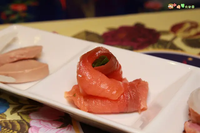 整個燻鮭魚很軟嫩,帶著一絲絲鮭魚自然甜味,搭配上那一點提味的薄荷更加是畫龍點晴。