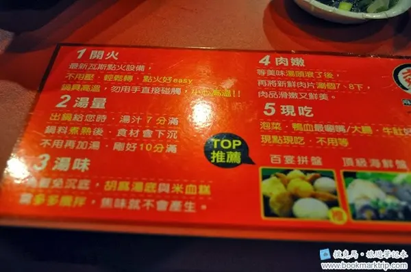 老先覺麻辣窯燒鍋折價券活動期間贈送小菜乙份消費的項目等待期間,觀察了店內四周,而桌位上也有些教學的資訊,火鍋怎麼煮提供了五大步驟參考,或許無聊的時後可以看看吧!