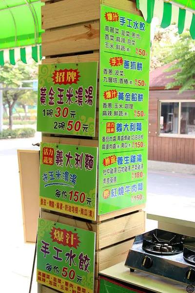 義大利麵、水餃、蔥抓餅、玉米濃湯等食物都有,聽老闆說很多遊客在附近騎完腳踏車都會來這吹冷氣、點些東西填肚子。