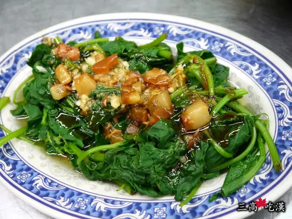 燙地瓜葉也澆上香噴噴的肉燥,菜葉挺嫩的~