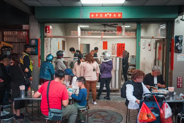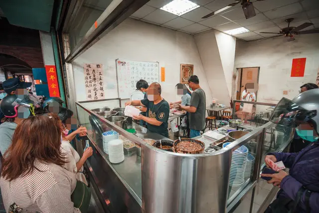 看起來有點兇兇的老闆,其實很親切,排隊的人把櫃檯團團包圍,要外帶請排隊,內用的請自己找位置坐等服務人員來幫您點餐