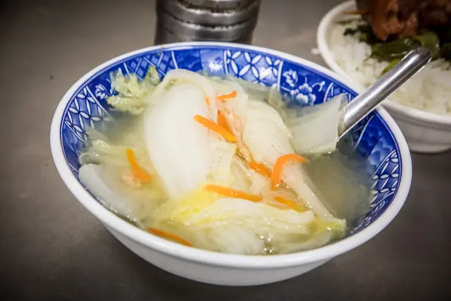 白菜滷我是點湯的,湯頭喝起來很是清甜,白菜吃起來帶有脆度,而且吸滿高湯的味道,一口湯一口爌肉飯,舒服