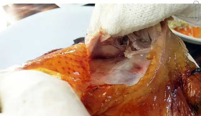 雞皮真的脆到扒開會有聲音,這種脆度像是再烤下去就會焦掉