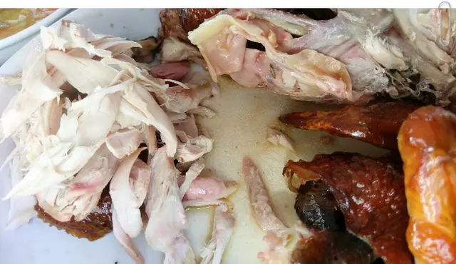 再寫一段讚揚雞皮!用力捏它就像是推到紙一樣,雞皮產生皺褶了!整片的,是整片的脆皮啊!