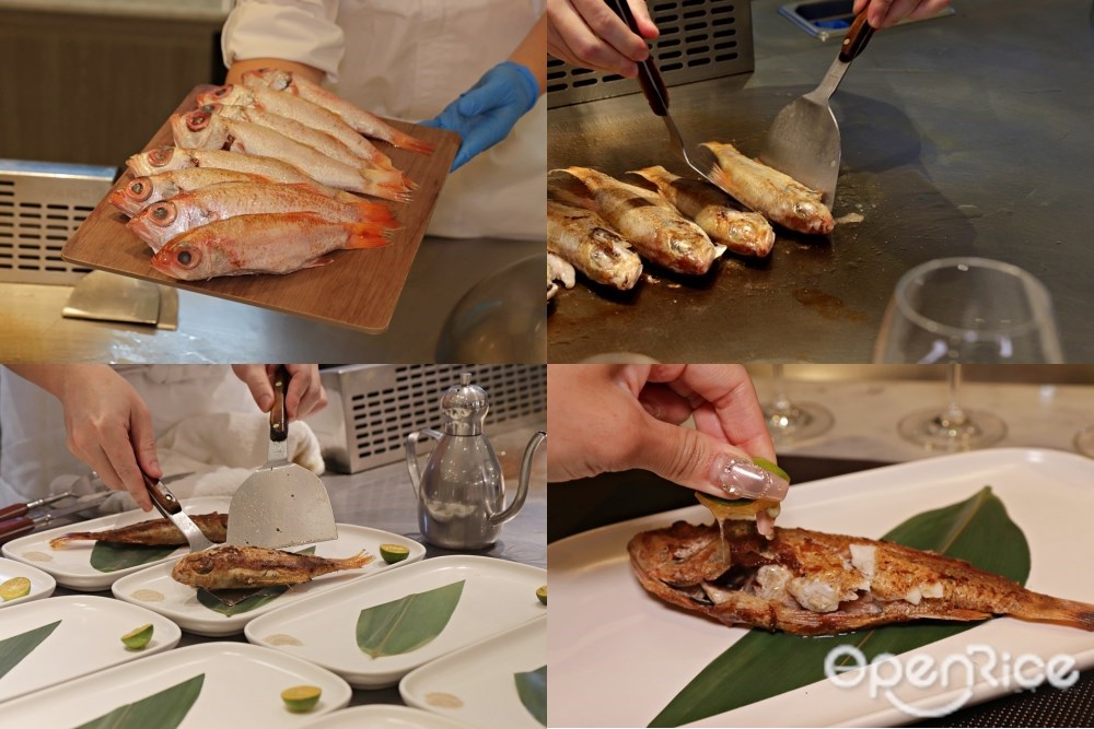 而「春沐鐵板燒」則推出呼應在地精神的「冰火奶油菠蘿配和榮意松阪黃金豚」,嚴選嘉楠集團旗下的「和榮意」的雲林快樂豬,取每頭豬僅六兩的松阪部位,保留鮮甜原味,搭配香氣誘人的冰火奶油波蘿包,創造出鹹甜交織、層次豐富的極致享受;以及季節限定的純粹鮮味選用當令現流鮮魚「龜山島紅喉」,主廚精選龜山島海域限量的紅喉魚,是在地漁民眼中「少量且珍貴」的海味,肉質鮮嫩細緻、帶有自然油脂光澤,以極簡手法快火煎封,讓魚皮微酥、魚肉滑嫩,完整保留紅喉魚最純粹的鮮甜與季節風味,也用大海的鮮味平衡了牛肉料理的香濃滋味,為下一道登場的美饌打開味蕾。