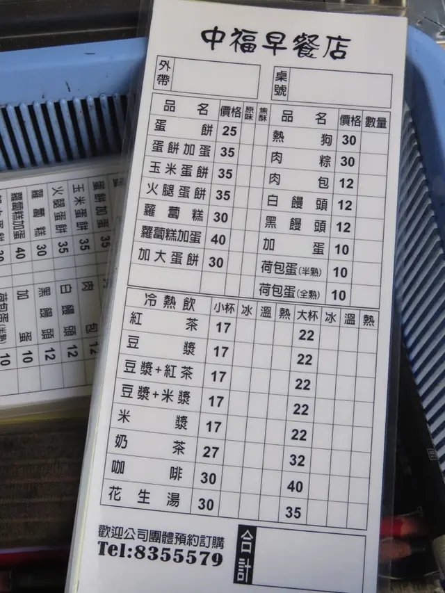 小小的早餐店,菜單選擇不多,中式為主以及幾款常見飲料