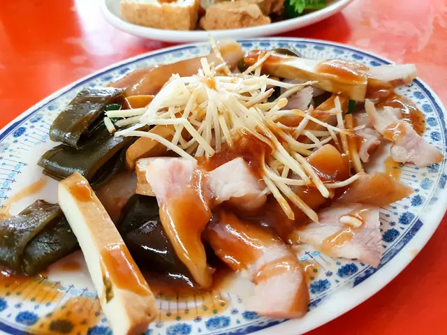 滷味是老闆幫你搭綜合的,豬頭皮很鮮嫩耶!沒有肉腥味,醬子一盤有豆干、海帶,豬頭皮,50元非常便宜!大推必點!