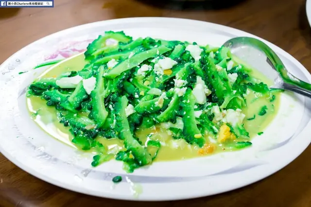 ▼所點兩道青菜,分別為「山蘇」與「鹹蛋苦瓜」,