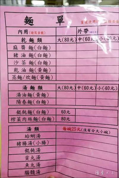 豬油麵 $60(中)