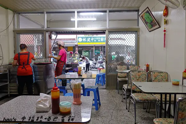 中福早點外觀與一般傳統早餐店差不多,外側是餐檯及鐵式蒸櫃。