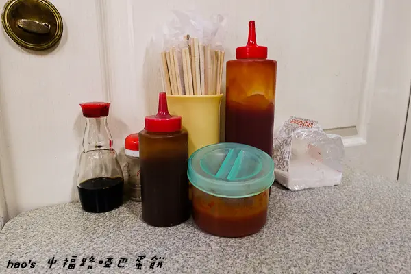 桌上有提供各式調味料如辣椒醬、醬油、醬油膏、甜辣醬等。
