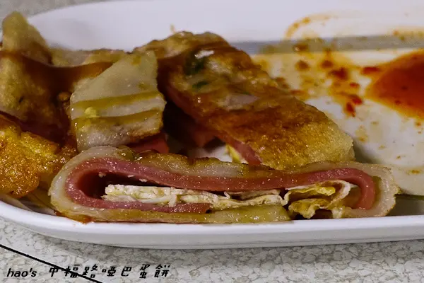 香酥的蛋餅加上軟嫩微鹹的火腿,滋味及口感更豐富。