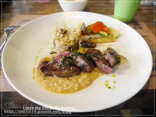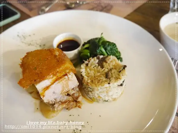 飯的部分是西班牙風味飯,裡面有香菇和香料拌在一起 吃起來很香
