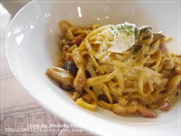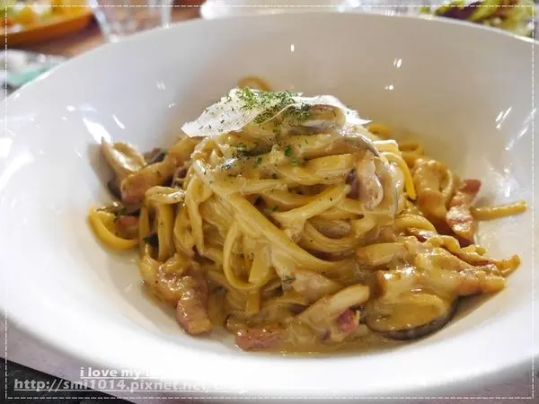 偶而吃到洋蔥和野菇讓整道麵食多了一份清爽的口感