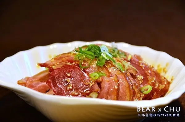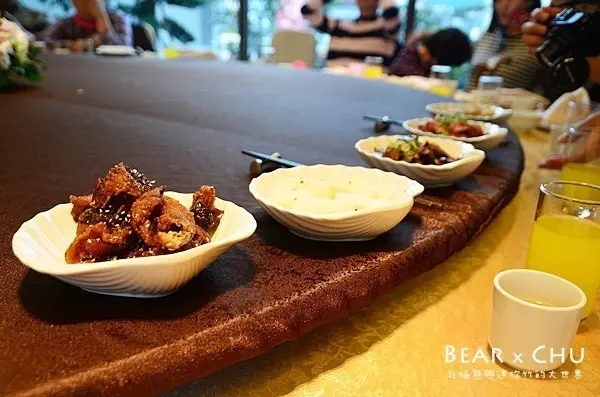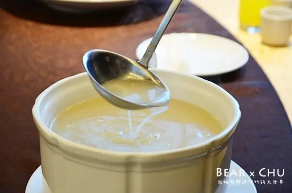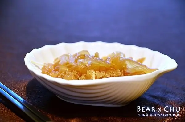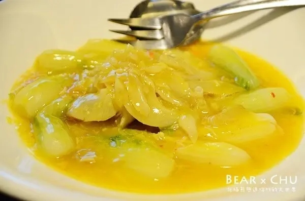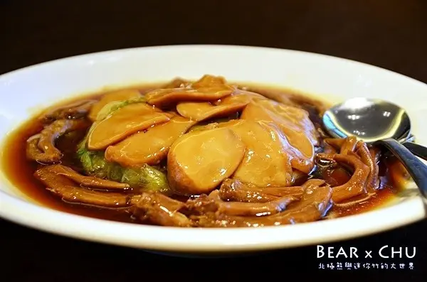 蠔皇鮑甫燴鴨掌這道以蠔油風味為基底,鮑魚、蔬菜口感相搭,讓成圈的鴨掌燉煮的超軟嫩,入口不需費力就骨肉分離,吃得到鮮美滋味,我和熊都很喜歡這道。