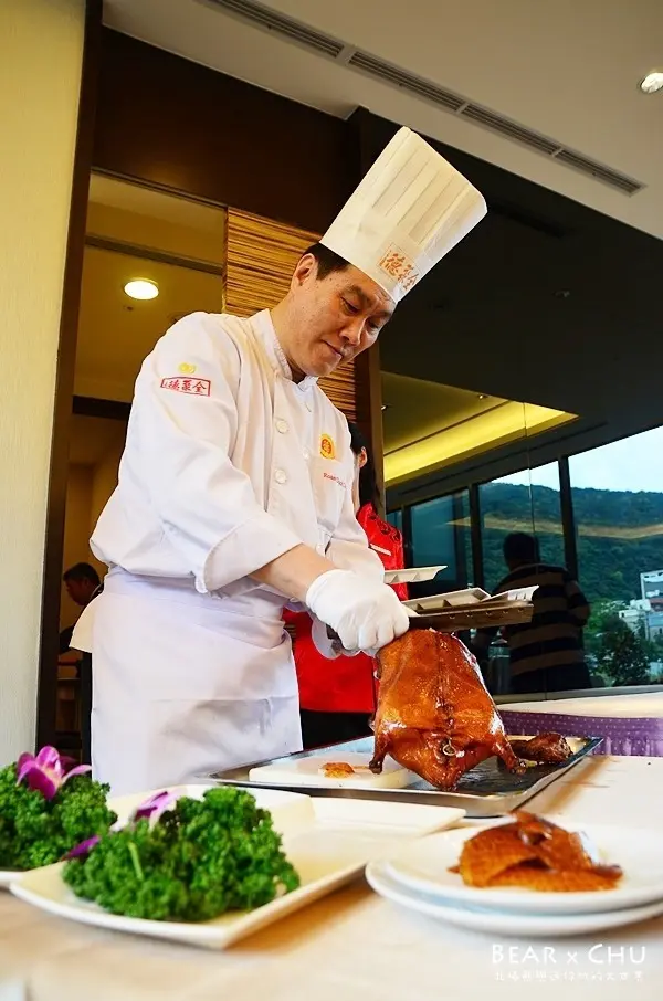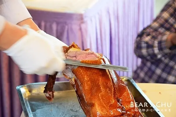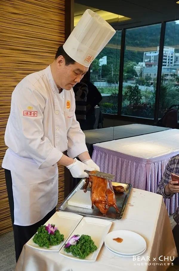 終於見到全聚德烤鴨的廬山真面目,片鴨的當然是來自中國全聚德的師傅,先前為我們介紹菜色的服務人員在旁邊說明介紹,但想當然大家眼睛直盯著師傅片鴨,我只記得開頭說了中國全聚德已經有151年歷史,欲知詳情請到現場仔細聆聽或是上網搜尋一下。