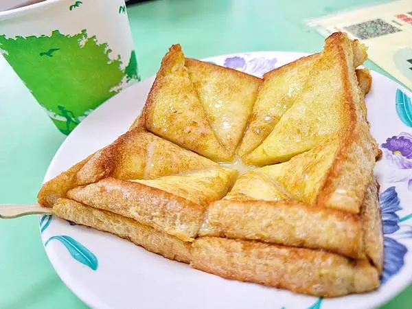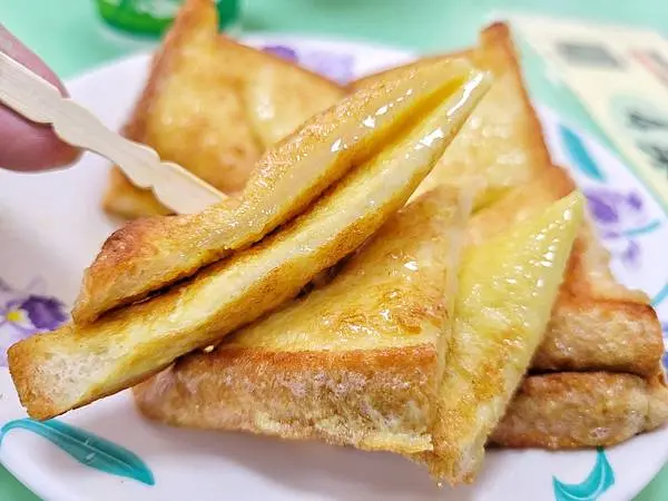 法式吐司:店內招牌就是這超級誘人的法式吐司,沾滿蛋液後,煎至金黃色澤,切成小塊後淋上香濃煉乳,老爺一大口咬下,哇!這法式吐司口感真的好棒,就是那鬆軟可口的吐司,添加了濃郁甜甜奶香,這餐點讓我們倆搶食吃光光,允指回味!