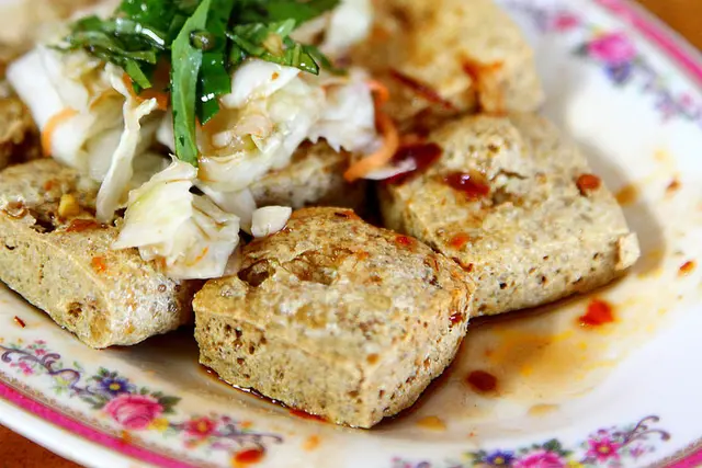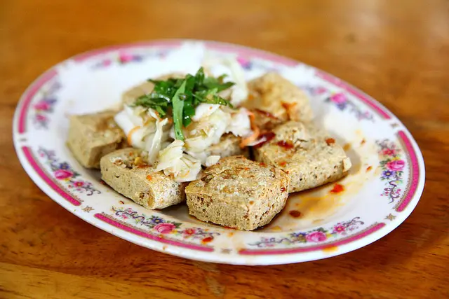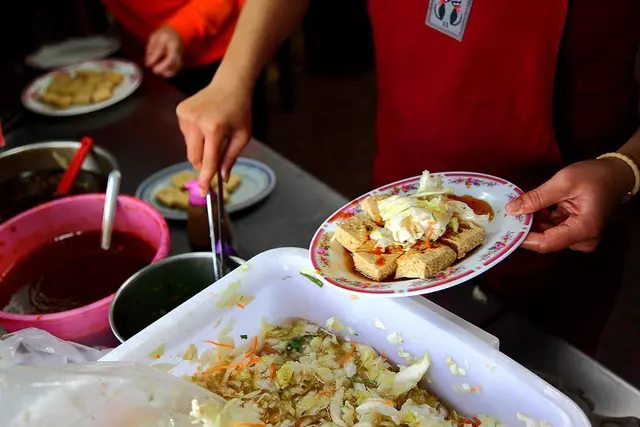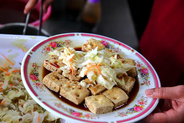筷子接觸到豆腐發出悅耳的酥脆聲響,搭配夠味的台式泡菜一起入口