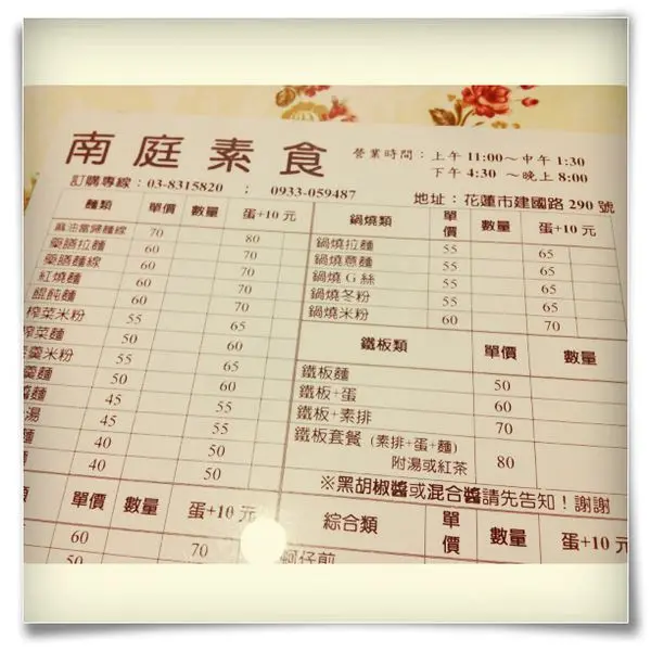 ||吃。花蓮|| 南庭素食菜單多選擇,好吃又便宜