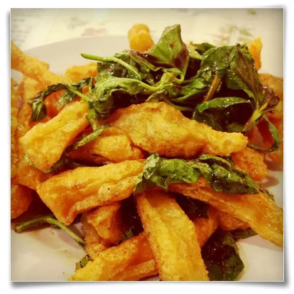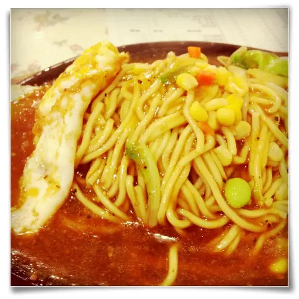 看到別人在吃鐵板麵,那吱吱作響的麵看起來真好吃,我們也點了一盤一起share。