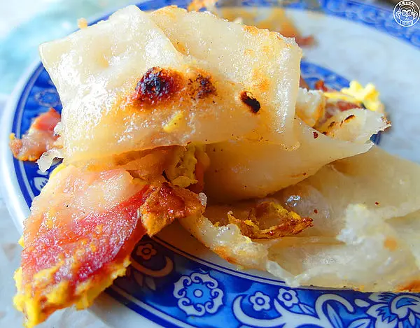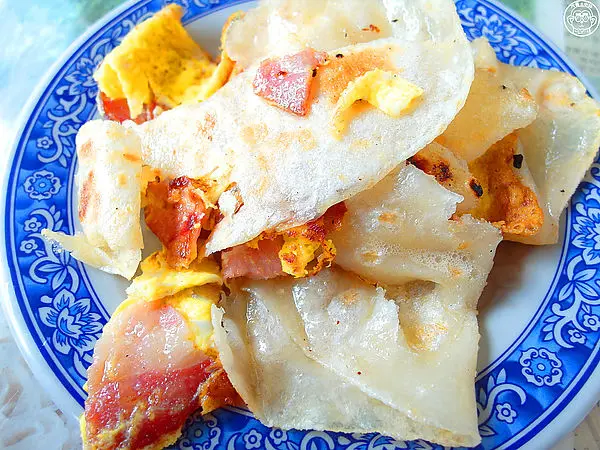 火腿蛋餅(30元) 蛋餅皮是老闆自己做的,較有厚度嚼勁