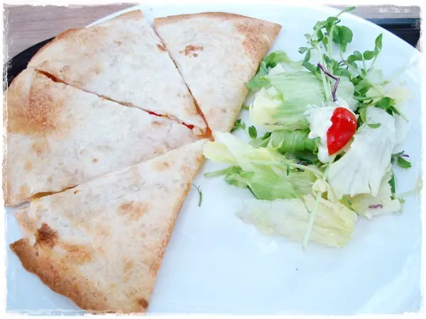 墨西哥蔬菜乳酪派,旁邊的生菜上的醬也給得太少了!