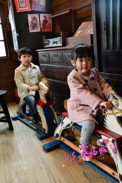 二隻氾黃的搖搖馬,是賢哥、喬妹的最愛。。