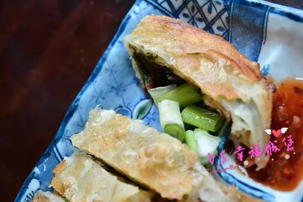 總算有一道是我熟悉的小吃,蔥油餅的餅皮煎得恰巧酥脆,蔥放得很豪氣,餅皮跟蔥的比例差不多是1:1,不沾醬就很好吃了,重口味的朋友也是有泰式酸辣醬可搭配喔!