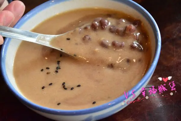 這道甜點是店家發想的自創料理,主角是古早味的米ㄚ乎,現代的小朋友應該很多人都沒有吃過,放了些糖及熱水沖泡,再加入紅豆更顯得豐富,這個組合真是很麻吉~