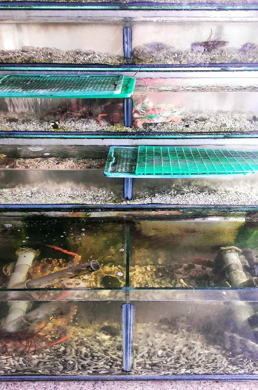 入口旁的水族箱,用餐的過程,不時看到魚販開著車子來補貨,